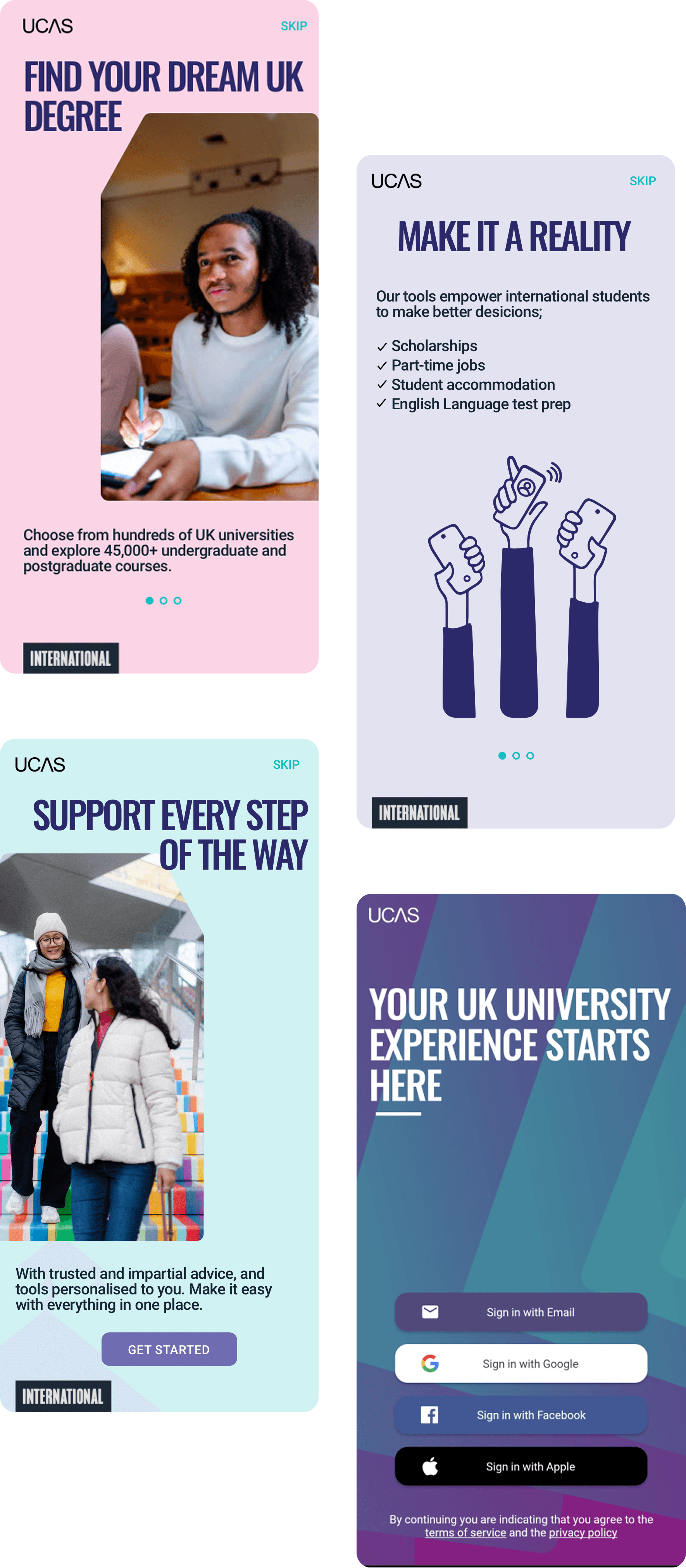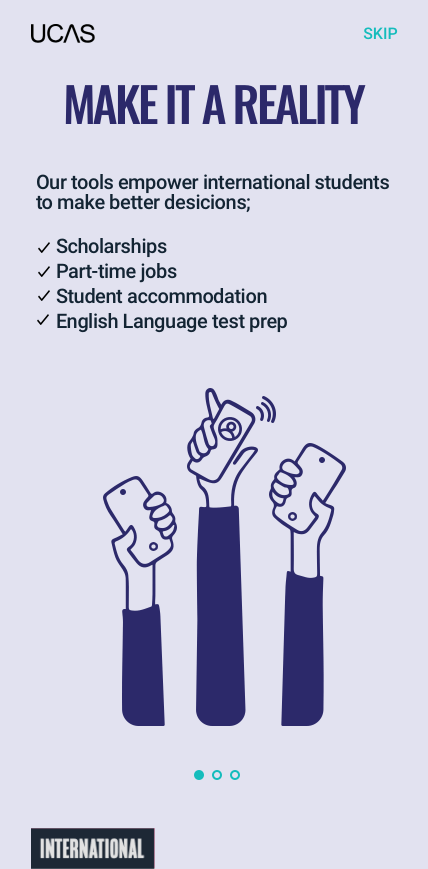 A rebrand of all Myriad products and relaunch under the name ‘UCAS International’ name was decided to reinvigorate student interest. We worked with an external agency, Hybrid, to explore and define a new ‘international’ proposition.